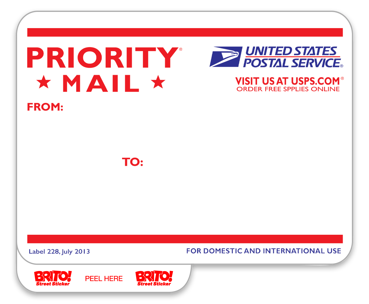 We can't forget about the OG! No collection would be complete without the USPS 228 Priority label; only these are better. Printed in LA on specialty eggshell vinyl designed to crumble under pressure. Completed with our easy peel tab for a quick peel and slap.