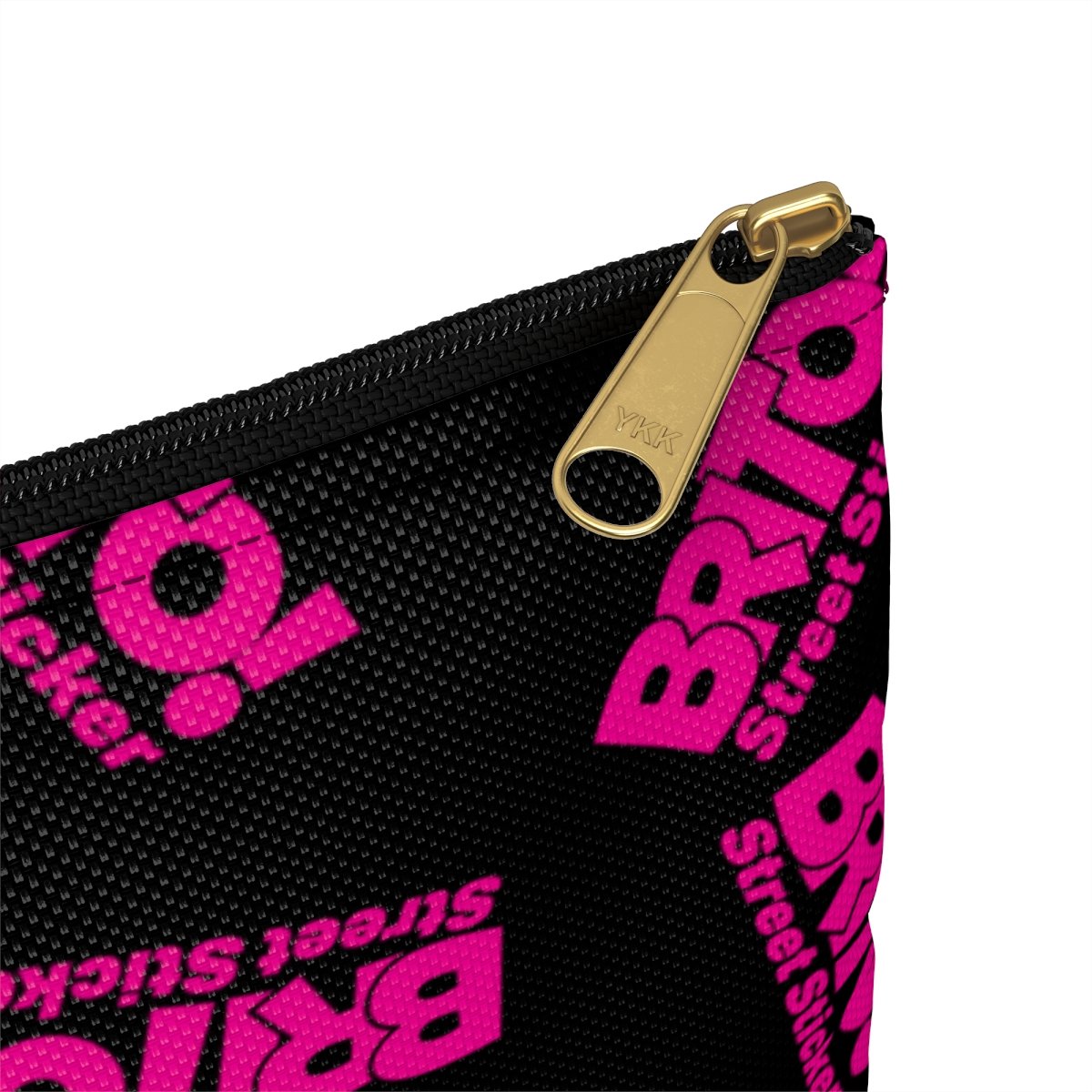 A compact, boldly patterned accessory pouch designed to carry your everyday essentials (stickers). Resists wrinkles, lightweight and structured, it slips into backpacks or handbags and keeps small gear organized and visible. The interior is laminated for added stability and easy cleaning. Handmade assembly in the USA.