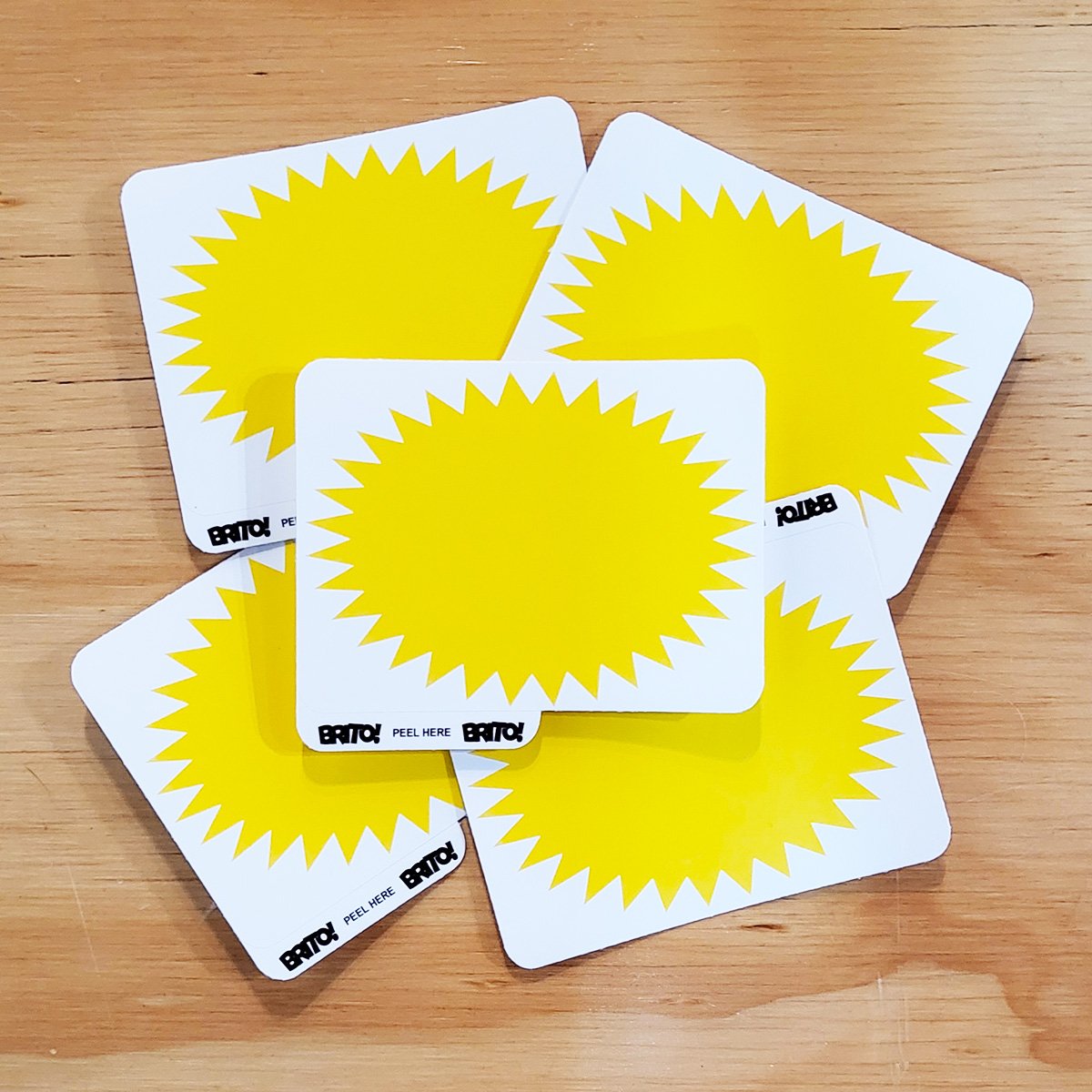 Printed on the Brito! specialty, brittle, hard-to-peel eggshell vinyl. Add a simple pop to your tag with the minimal SunBurst design; complete with an easy-to-peel tab for quick applications while you're on the go.